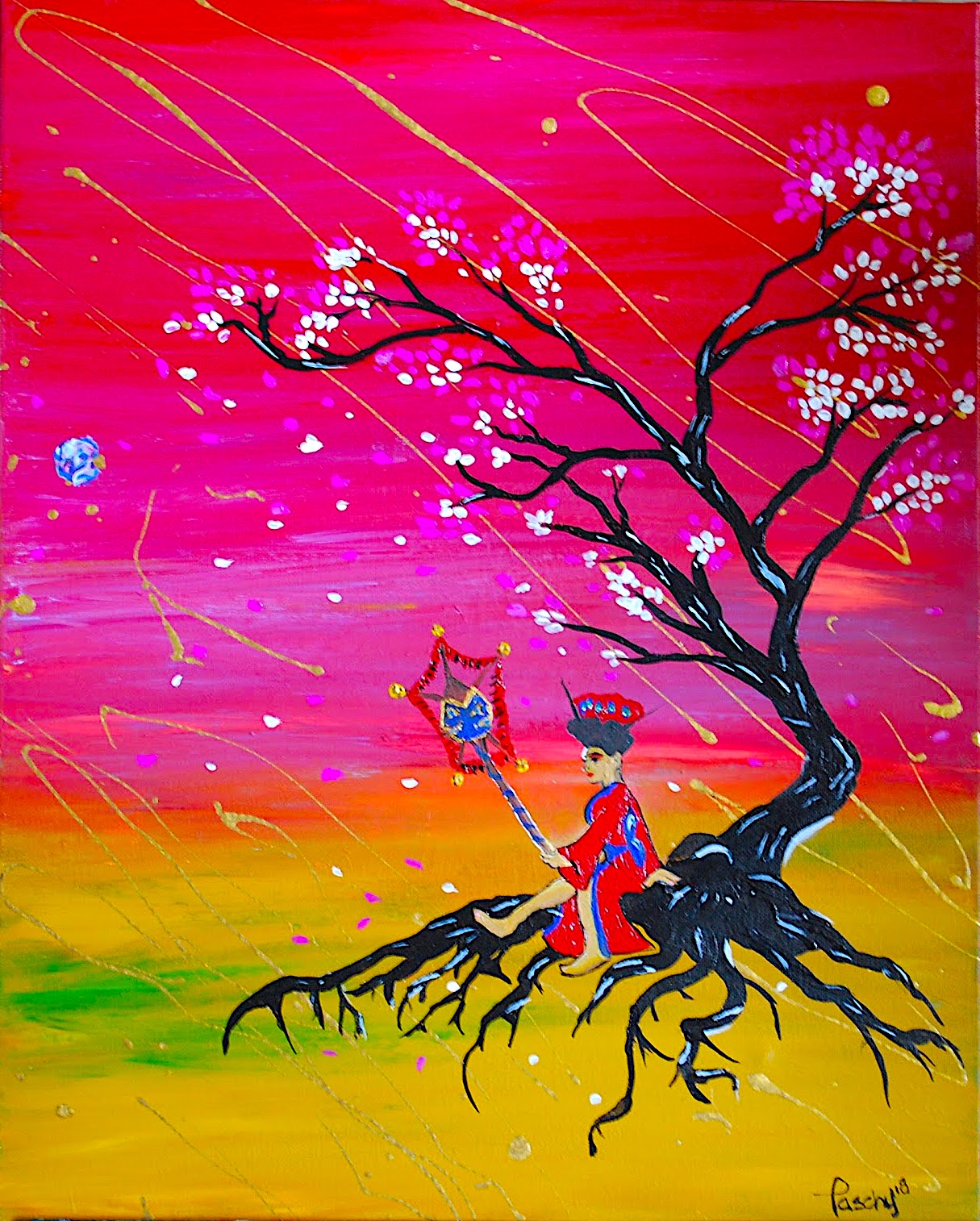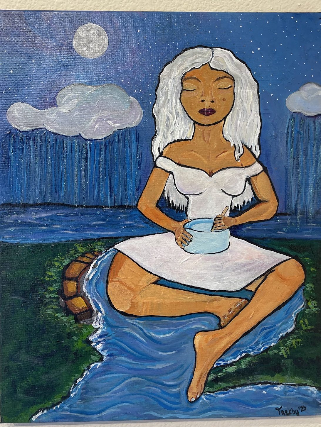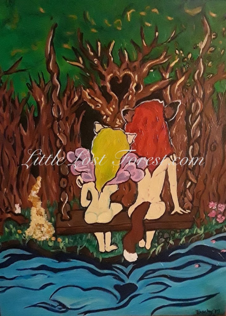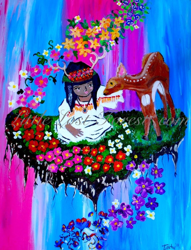 This painting holds profound significance for Natascha, reflecting her journey towards becoming an adoptive mother and paying homage to the birth mother’s role in this transformative experience. Through “Shasta Fairy,” Natascha celebrates the beauty of motherhood and the interconnectedness of life’s cycles.