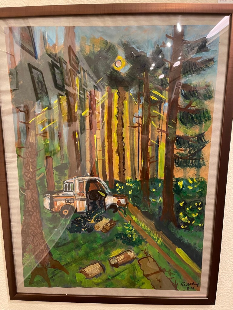 Plein Air Contest at the Redwood Art Association. “Dragon in the Garden,” “Woodley Island Fisherman,” “Broken down,” 2024