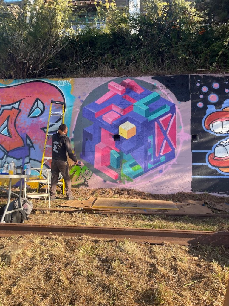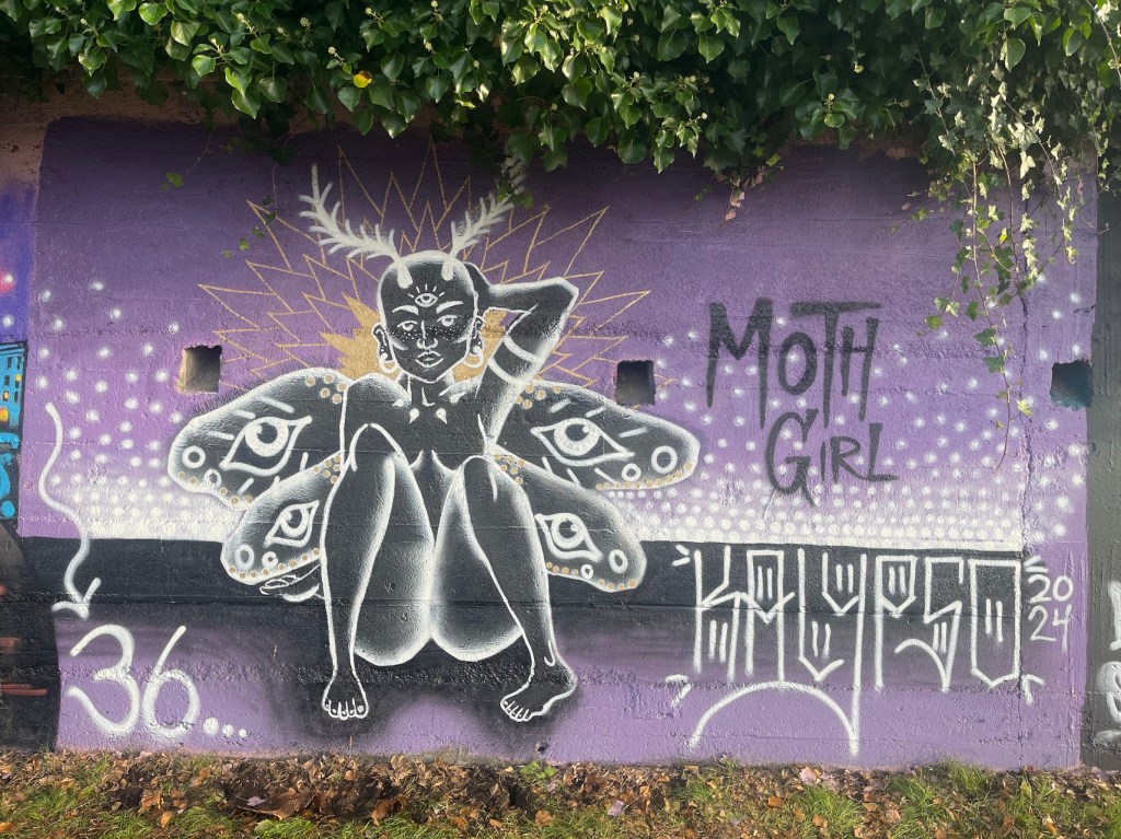 Natascha: This is Natascha with the Little Lost Forest blog. Today I will be interviewing Noelle Cox, a local Eureka legend who specializes in oil paints, gold leaf, and customized frames. Noel Cox showcased her exhibit Underneath the Surface at Morris Graves in January 2024. Noel takes a surreal and abstract approach to local animals. Fantasized creatures, glorified bugs, and self-portraits. In her sci-fi paintings, a dark humor lingers in the foreground as each piece is staged with class and elegance. It’s September 7th, around 5:00, and we’re sitting down together in her home studio.