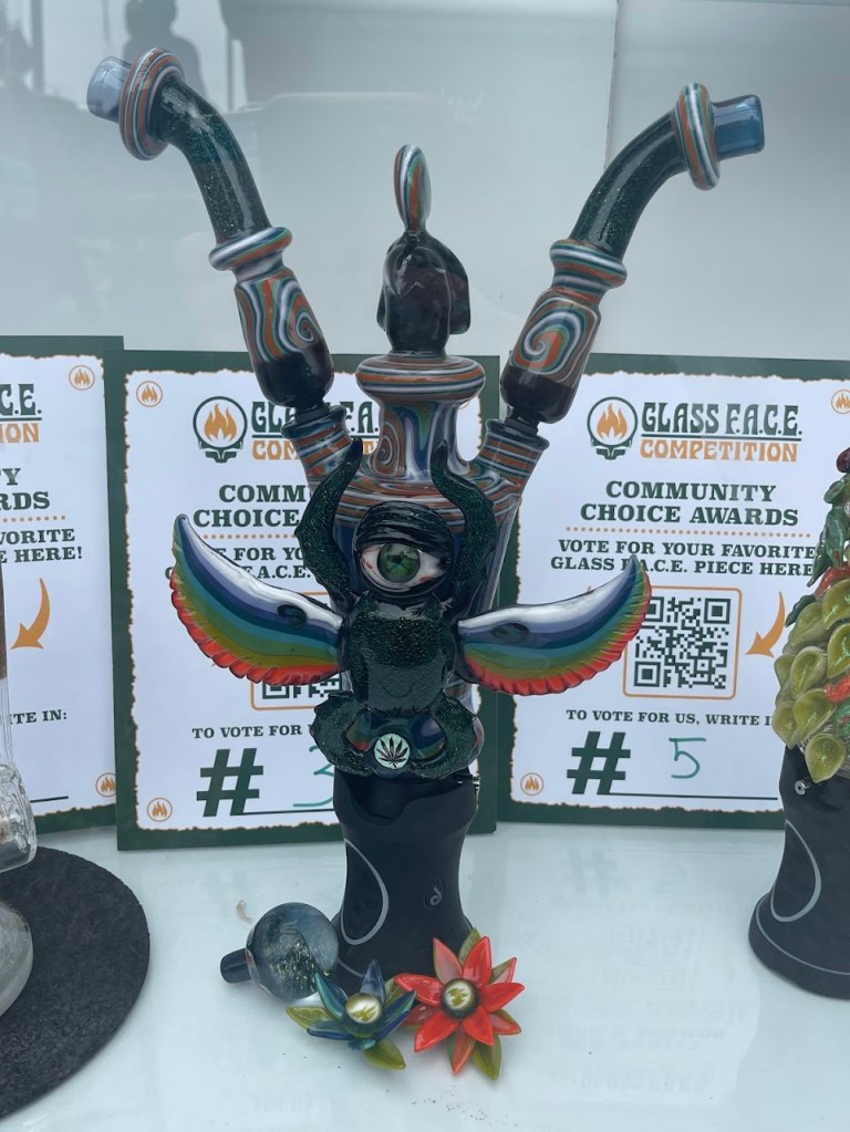 @original_cannabis_leaf_art– Dan, a Rio Del local, creates unique customized items using real marijuana leaves in his delicate approach. He showcased Christmas ornaments and “high Santa” and Halloween art like a framed pot leaf spider.