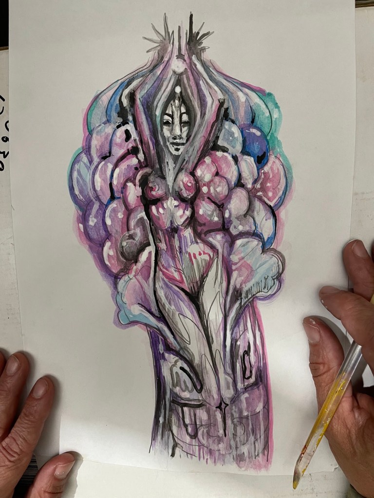 Satya: Absolutely. I had some moments to reflect on this, and the evolution of my art truthfully, has come from a place of pain and suffering and knowing that these wounds can be transformed. And I’m speaking from a mother wound that without that experience and without those wounds, I wouldn’t be where I’m at today. Having a troubled relationship inspired me to ask: how can I best show up for myself and how can I best show up for my children and for my community? How can I create this space of safety and trust within myself and within my community?