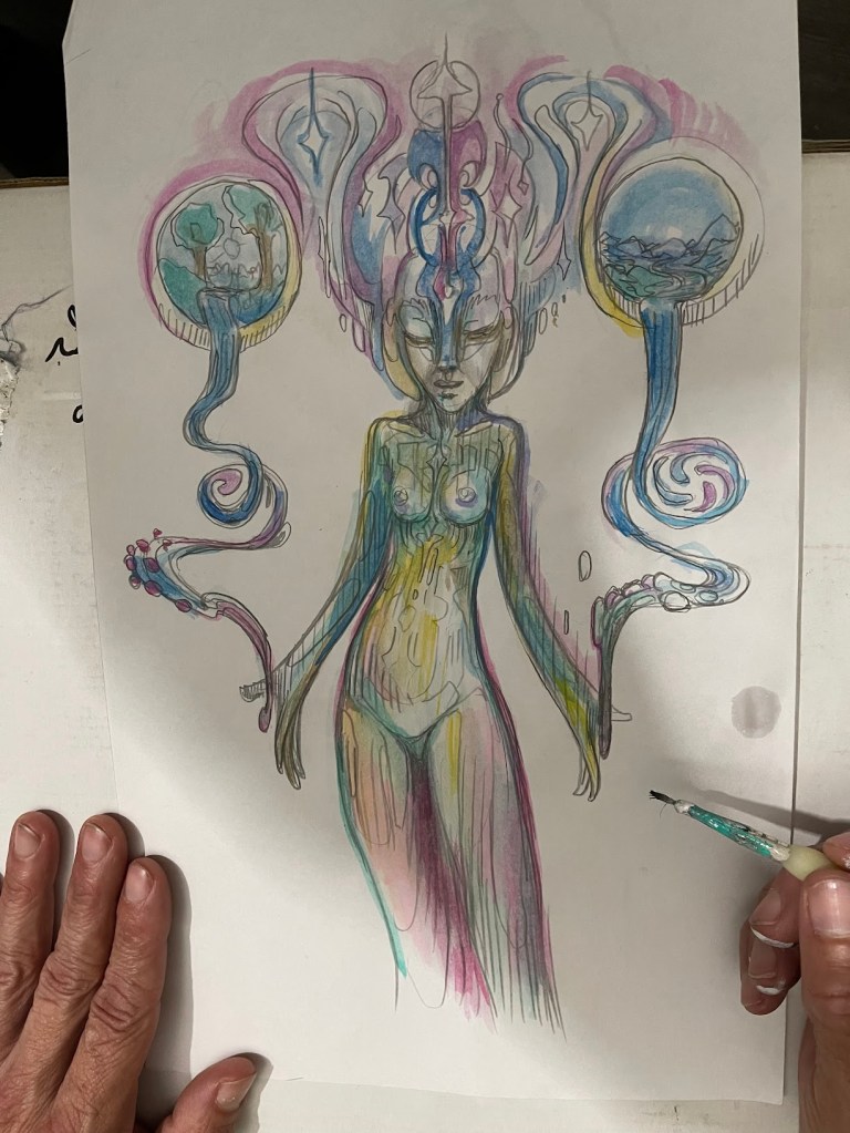 Natascha: I’m here at Azila’ Cauldron in Eureka with Roman, a visionary artist and OG creative force of Humboldt County. My name is Natascha, and I want to thank you for tuning into the Little Lost Forest blog. I’m beyond excited to dive into the art, theory, history, and creative journey of Roman a.k.a Synchro Mystic. How are you doing?