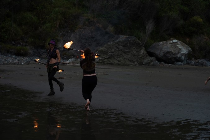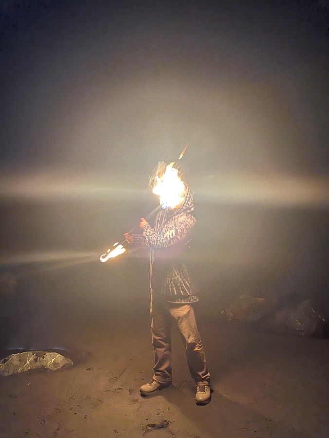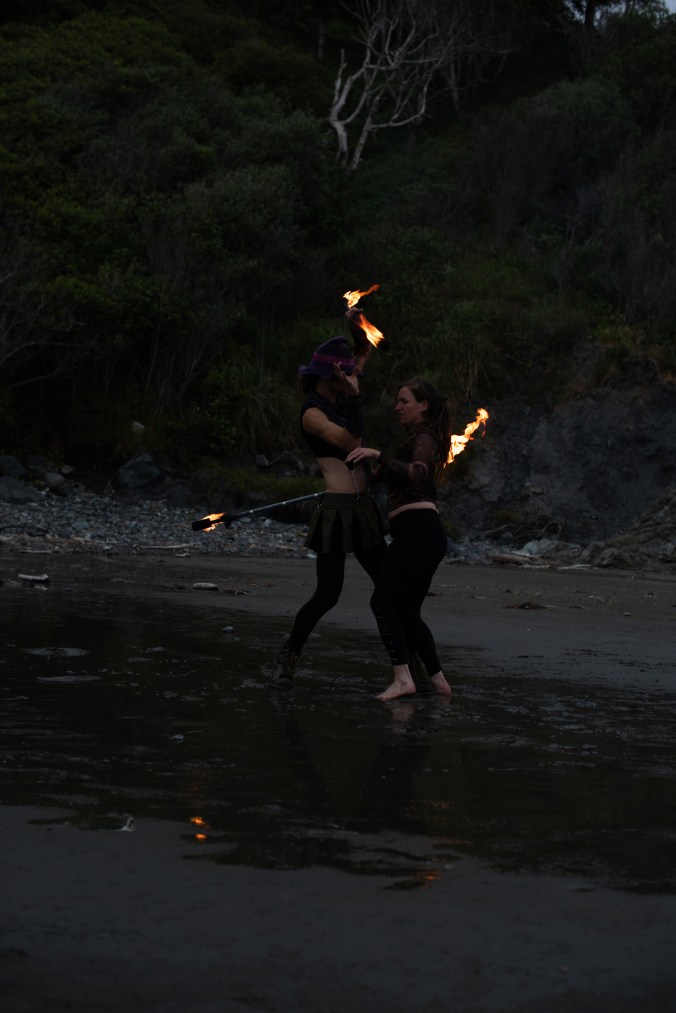Zephyr is a flow artist ignited by the winds and flames of Humboldt County. Spinning fire for over three years, Zephyr’s journey began with a ceremonial initiation by local fire dancers on the sands of Moonstone Beach. From those first handmade props—colorful ribbons and winter wands—to the vibrant fire circles of San Diego and Los Angeles, their path has been one of transformation and light.