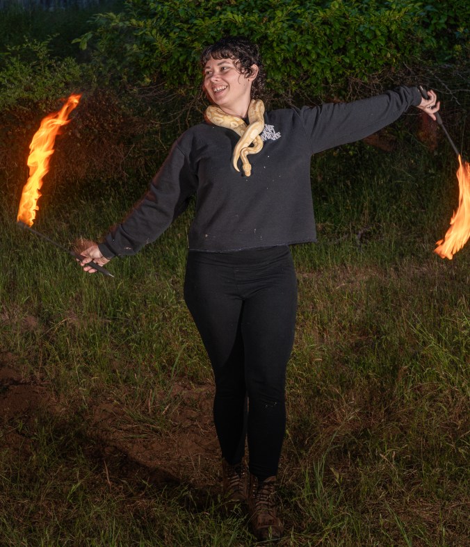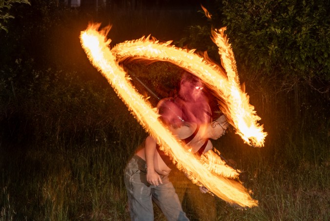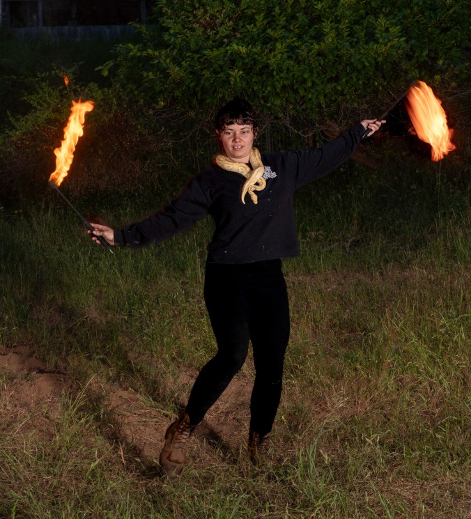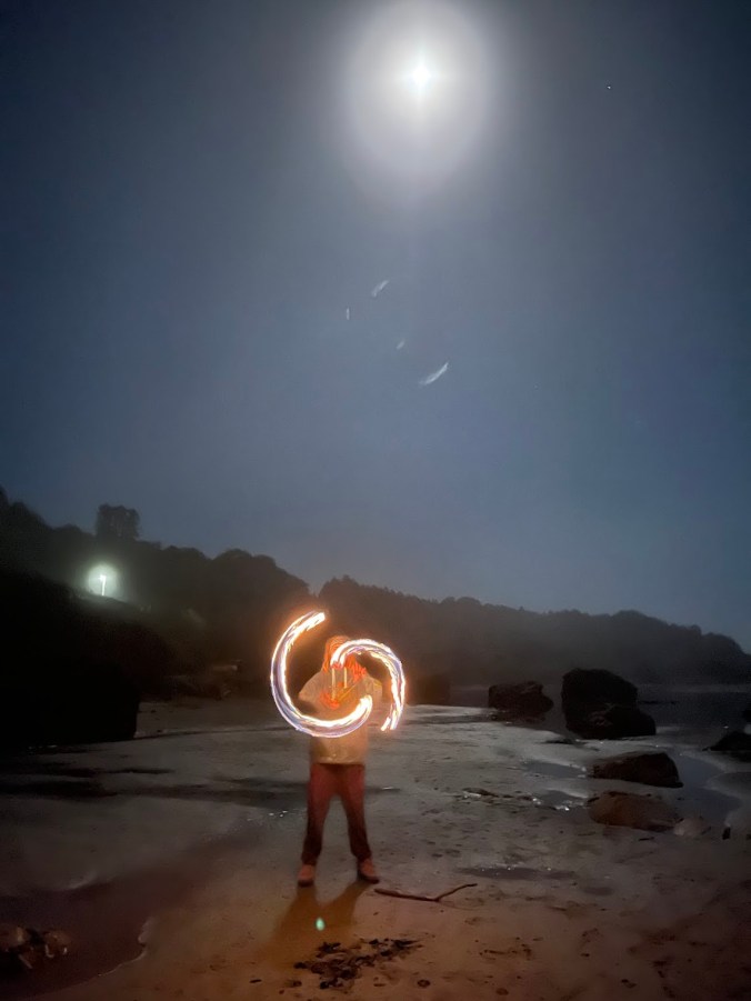 Though new to the art, Michael is relentless in his pursuit. He’s hungry to master every prop he encounters—from dragon staff and contact staff to swords and fire fins. His practice is fueled by community and his desire to stay connected, breaking the tendency to self-isolate.