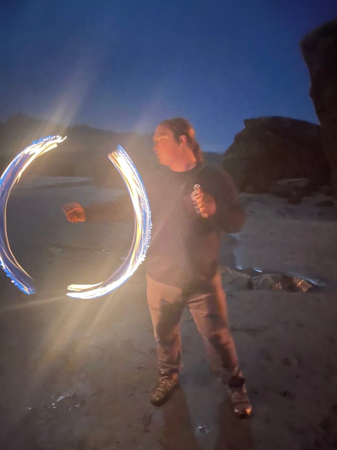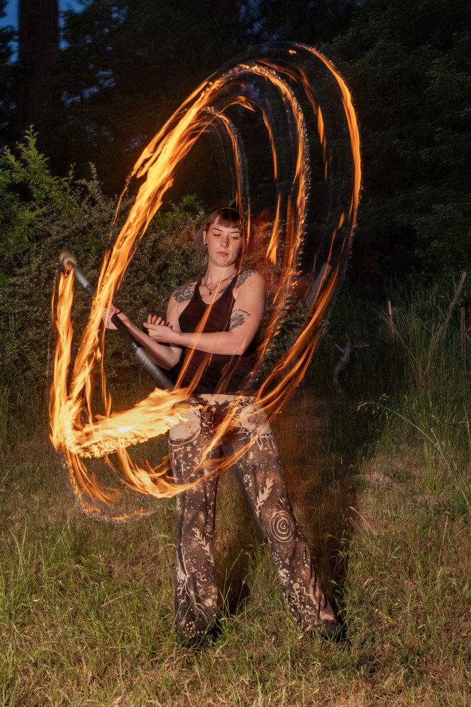 Michael is a fresh but passionate voice in the world of fire arts, having begun his spinning journey in 2024. His love of flame runs deep, tracing back to childhood curiosity and reignited by a memory of awe: witnessing his first fire performance at the 2008 Redding Renaissance Fair.