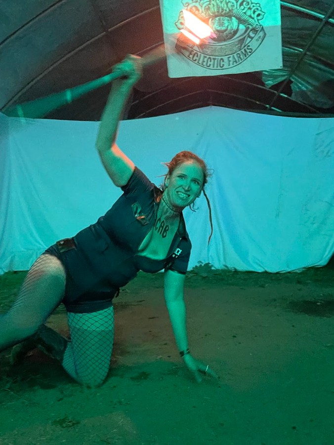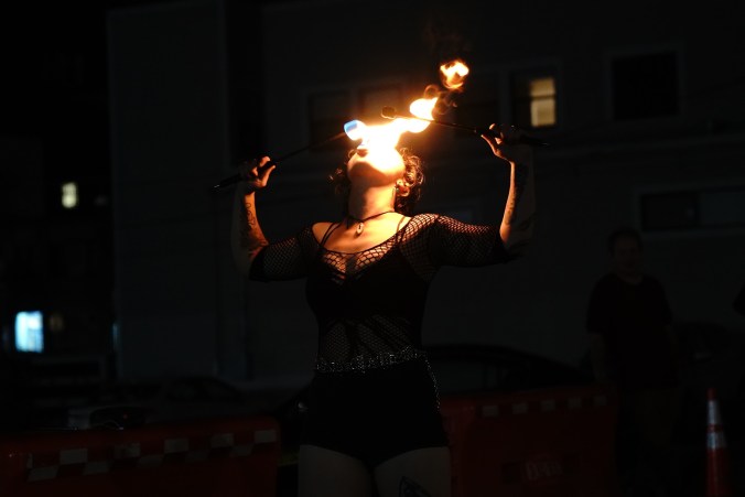 Starlight is an expressive dancer from Florida who brings a fusion of hip hop, belly dance, ballet, and acrobatics into her fire performance. She flows with staff, fans, palm torches, and fire bubbles, incorporating full-body movement and powerful inversions. Inspired by her community, she discovered her flow state through fire spinning and continues to grow her artistry with bravery and dedication. Her goal is to cultivate a one-of-a-kind style that pushes the boundaries of creative expression.